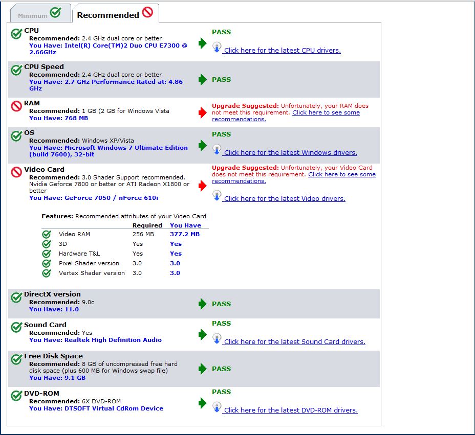ඕක මමත් මගේ යාලුවෝ ගොඩක් අයත් මූන දුන්න ප්රශ්නයක්.ඒකට විසදුම් හොයද්දි තමා මට මේ සයිට් එක හම්බ වුනේ..ඒකෙන් අපේ කොම්පියුටර් එක ස්කෑන් කරලා කියනවා ඔයාට ඕන ගේම් එක අපේ කොම්පියුටර් එකේ ප්ලේ කරන්න පුලුවන්ද කියලා.
